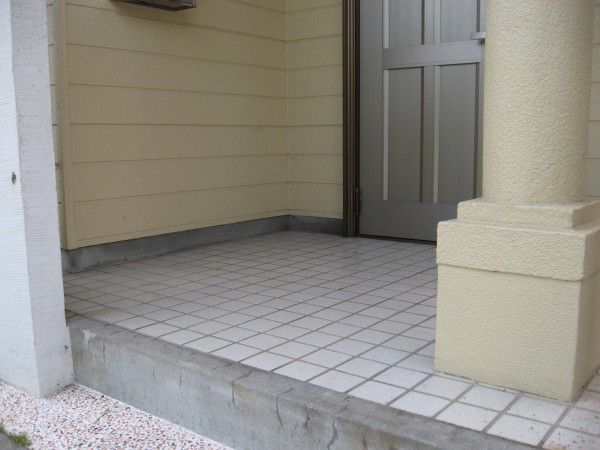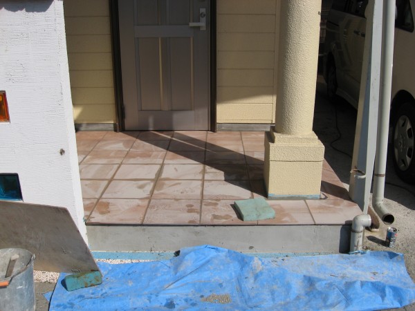 玄関ポーチのタイルは100角のものからテラコッタ風の300角タイルに張り替えます。